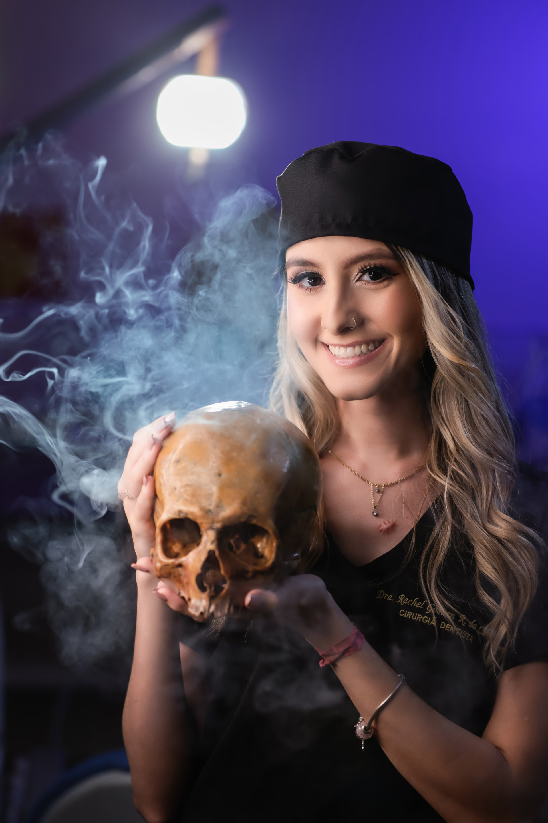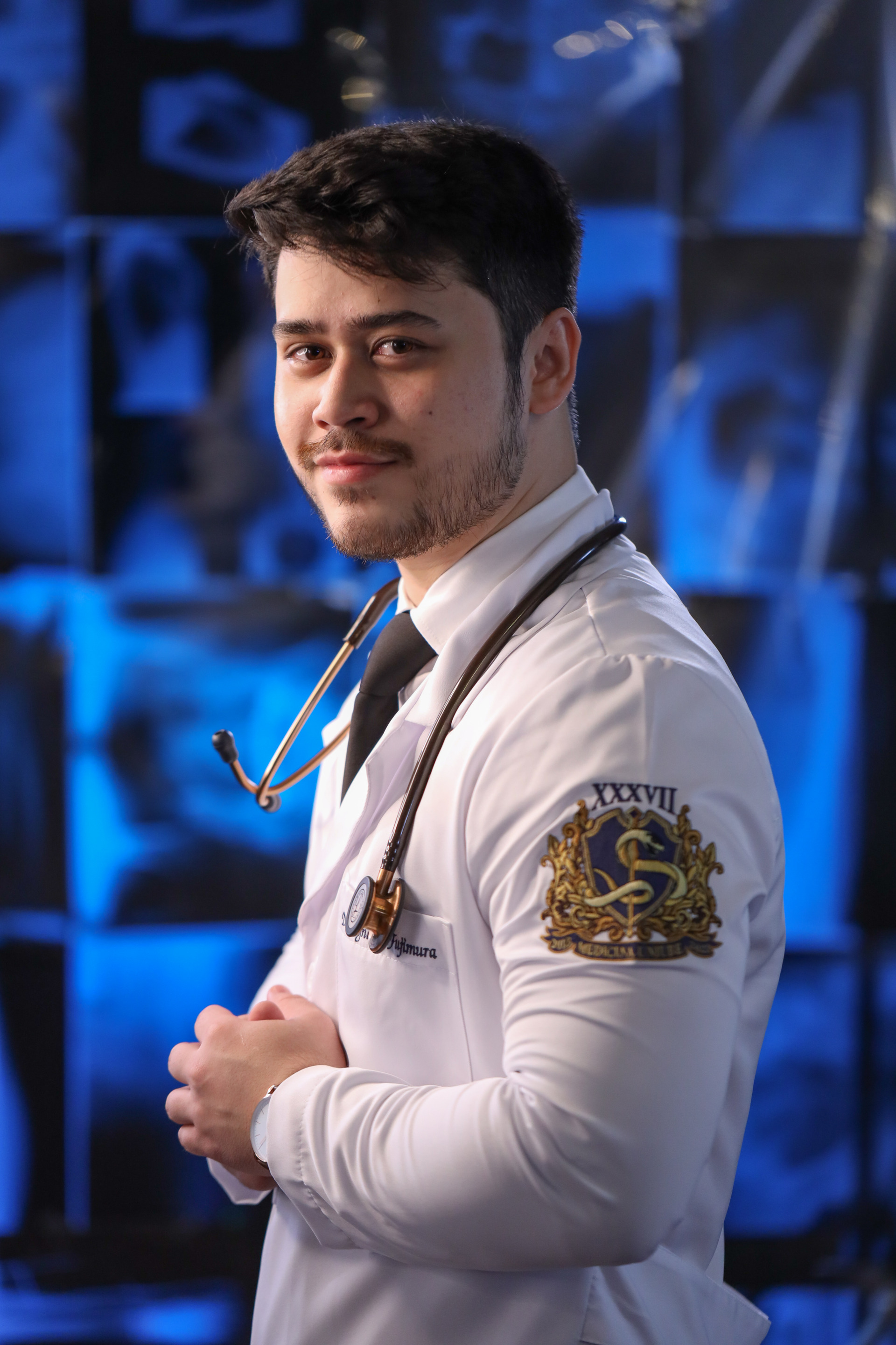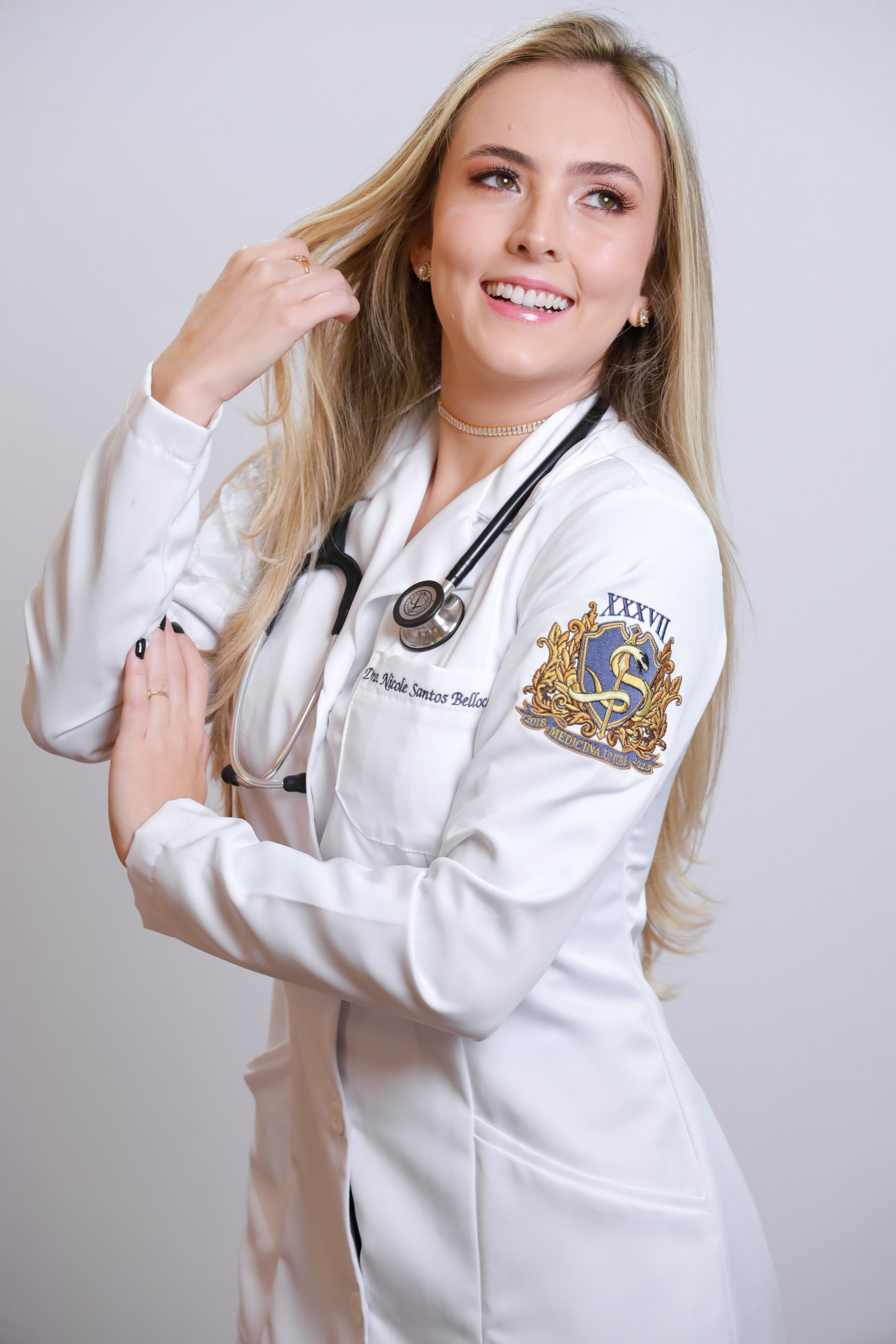 Jaleco providenciado pelo formando: fundo branco/preto.